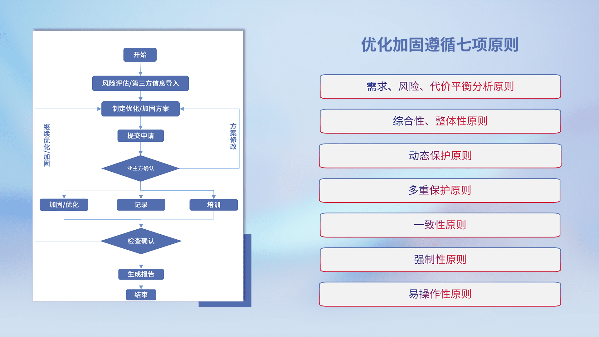 最大程度利用现有资产,,,对评估发现的问题进行封堵与整改,,,,防止漏洞被利用,,,,提升整体网络安全性,,,为客户带来高标准的优化加固服务。。。。